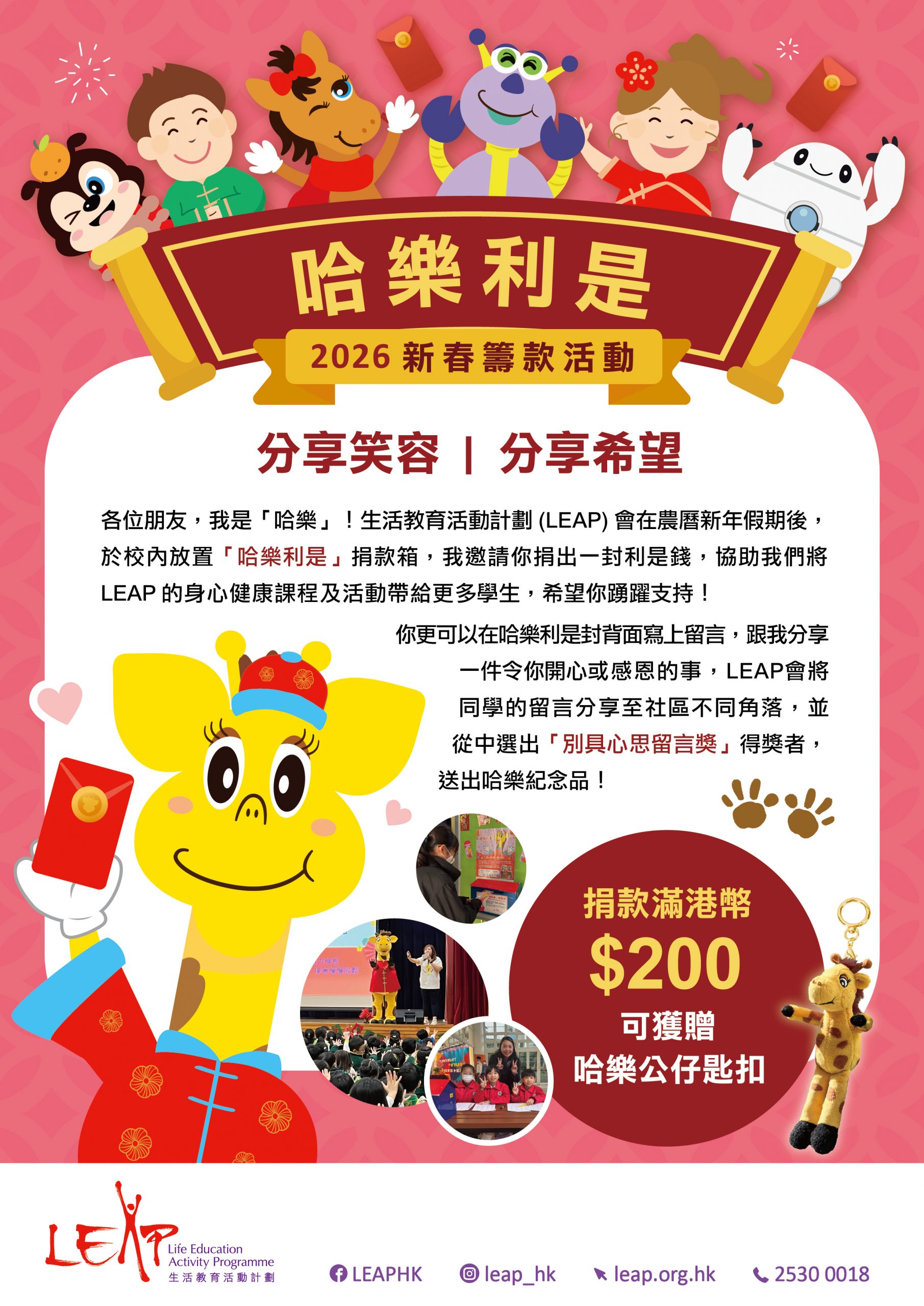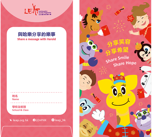 藉著新年這個充滿喜悅與祝福的日子,LEAP誠邀大家參與「哈樂利是」籌款活動,捐出利是,分享祝福,讓更多學生活出健康正面人生。